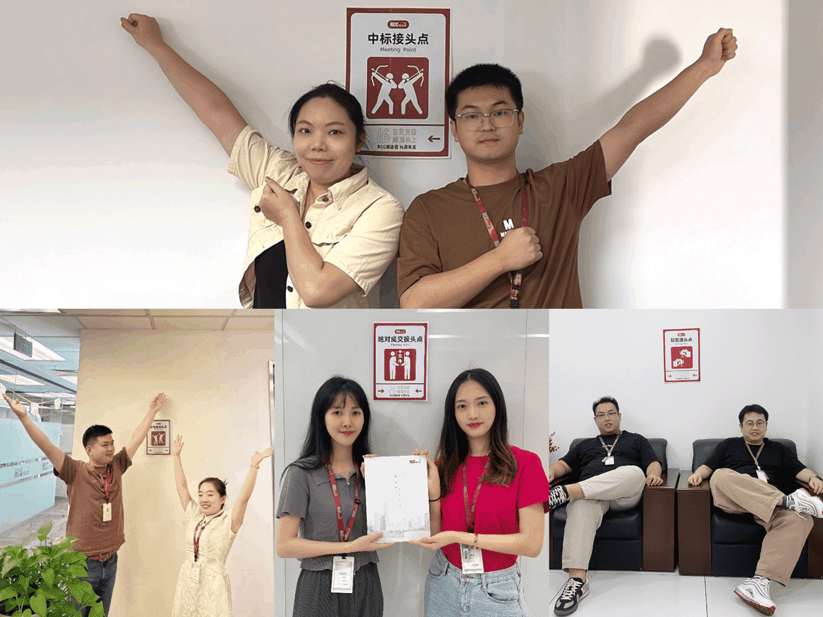 ? ? ? 辦公室內(nèi)的搭子接頭點成為了RCC人的熱門打卡地,不同部門的伙伴一起花式復刻海報姿勢,留下16周年限定合照。